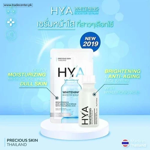 Buy Now from TradeCenter.Pk and get the 100% Original HYA Hyaluronic Acid Whitening Booster 10 ML delivered to your door! Best prices & exclusive offers — TradeCenter.Pk provides HYA Hyaluronic Acid Whitening Booster 10 ML across Pakistan, including Karachi, Lahore, Islamabad, Peshawar, Multan, Hyderabad, and many more. Enjoy the convenience of Cash on Delivery or online payment via bank transfer, JazzCash, and Easypaisa.Don't miss out! Shop online today for the best HYA Hyaluronic Acid Whitening Booster 10 ML deals in Pakistan at TradeCenter.Pk!